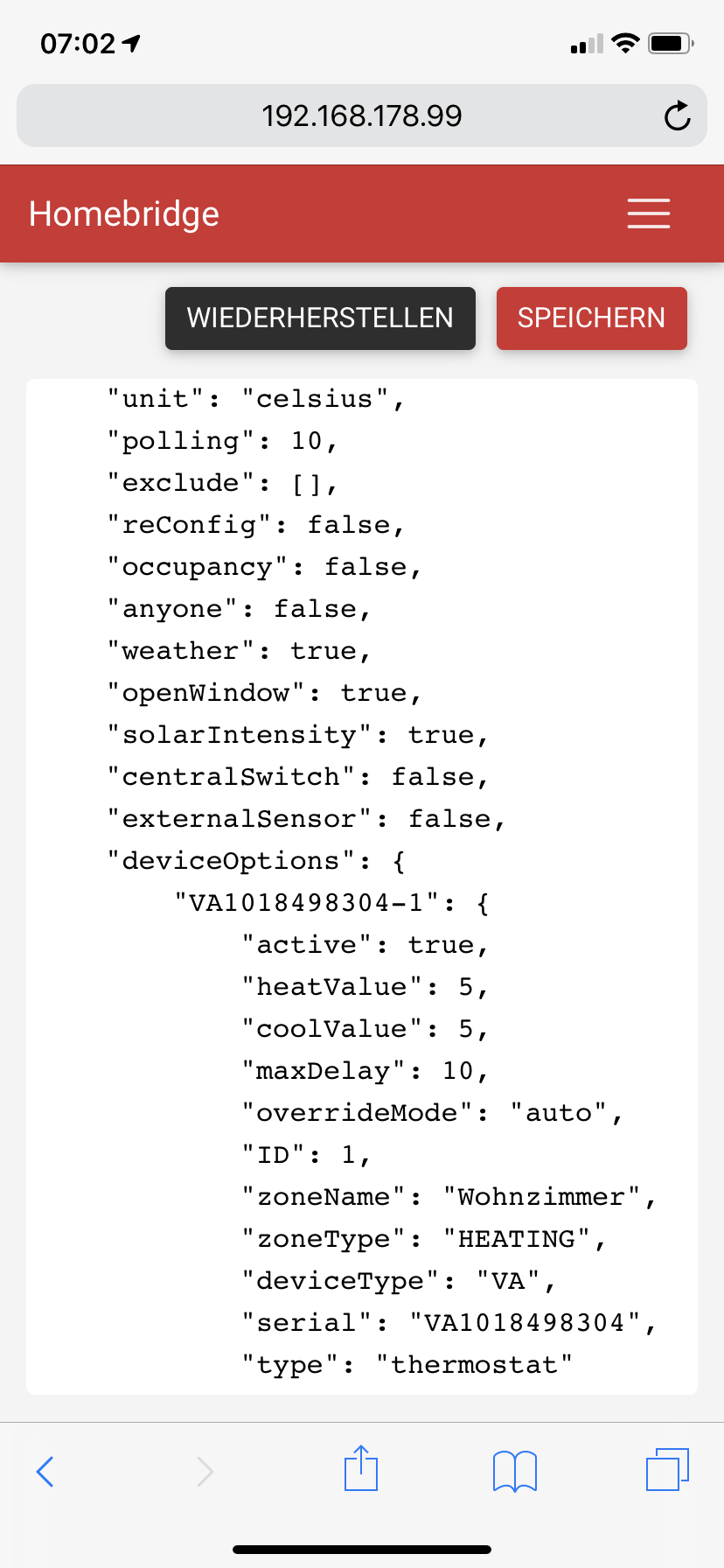 Und wie finde ich den User heraus. Ich folgte http://coldcorner.de/2018/04/0…m-raspberry-pi-emulieren/ um die Dinge nach einem Kompletten neuaufsetzen des Raspis wieder einzubinden. Da das Einspielen des Backups nicht funktionierte und immer mit einem X in der Phoscon App endete, habe ich alle Sensoren bereits wieder angelernt. Nun würde ich diese entsprechend gerne an die Homebridge übergeben. Unter IP hinten 99:80 ists erreichbar.