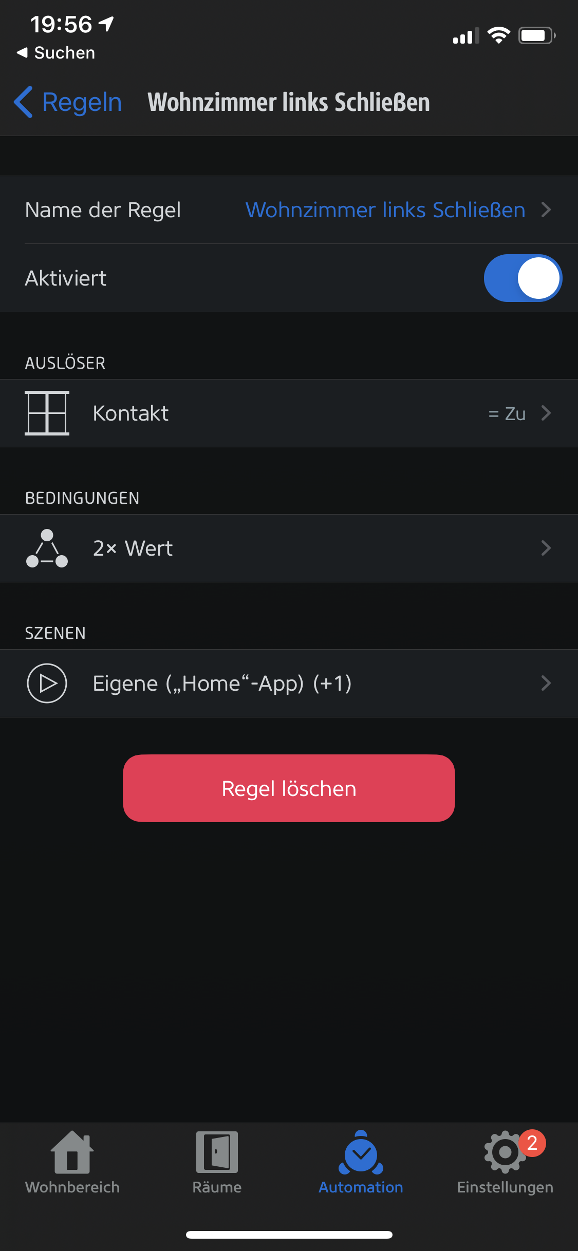 Also du hast die Regel in Home mit den Thermostaten des Plugin erstellt. Du speicherst. Dann gehst du in die eve App und wählst die entsprechende Regel aus. Anschließend fügst du entsprechend die Bedingungen zu. Bei drei Fenstern hast du dann drei regeln ohne Bedingung fürs ausschalten. Je eine pro Fenster und dann noch mal drei fürs wieder anschalten. Je eine pro Fenster mit den beiden anderen als Bedingung zu. Folglich tritt die Regel erst in Kraft, wenn alle Fenster geschlossen sind.