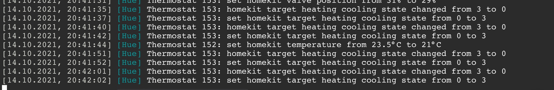 In HK springen sie von aus sofort wieder auf automatisch zurück und der log zeigt folgendes:
