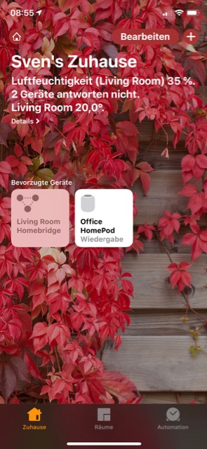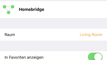 Die Homebridge ist auf der HomeKit App (grau) sichtbar, das war es dann aber auch schon ...