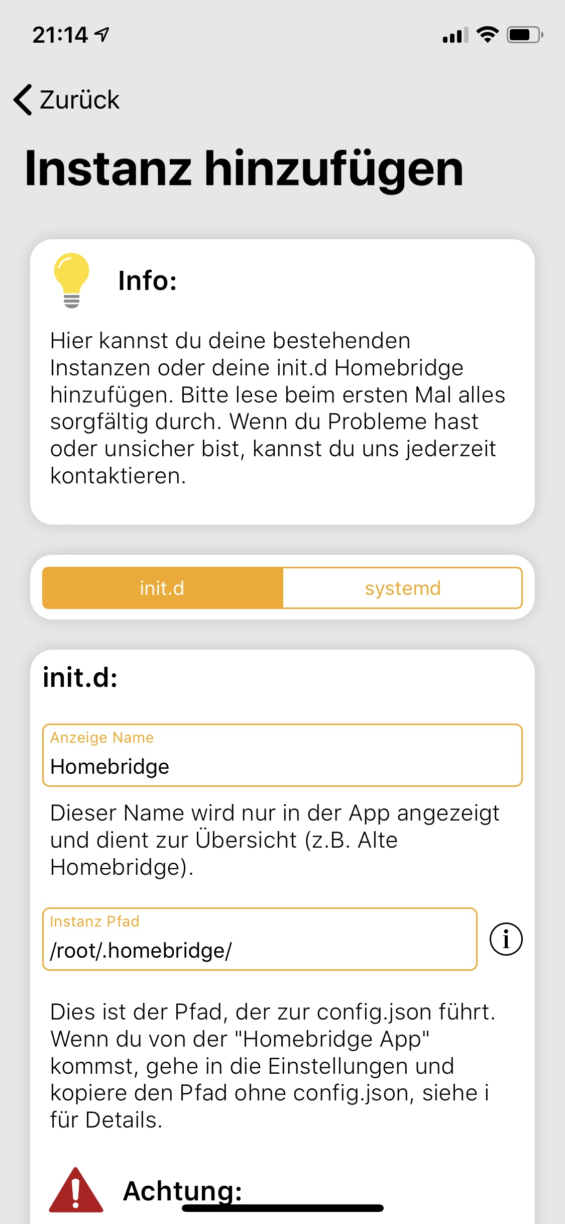 loonypac Für die Konfiguration bestehender Systeme müssen lediglich wenige Verbindungsinformationen eingegeben werden. Vlt machen wir noch eine Option nur für die Homebridge App, bei der alle Infos schon eingetragen sind.