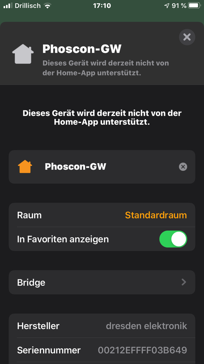Deconz nimmt ähnlich wie die Hue-Bridge nur die Sensoren und Geräte an und gibt sie dann über ein Plugin an Homekit weiter.