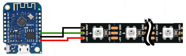Beachtet bitte, umso mehr LEDs ihr gleichzeitig anhabt, der Wemos sehr warm / Heiß wird. Der kann nicht ohne Ende die LEDS versorgen. Alternativ eine Extra Strom Versorgung über den USB Port.