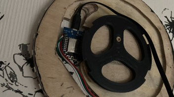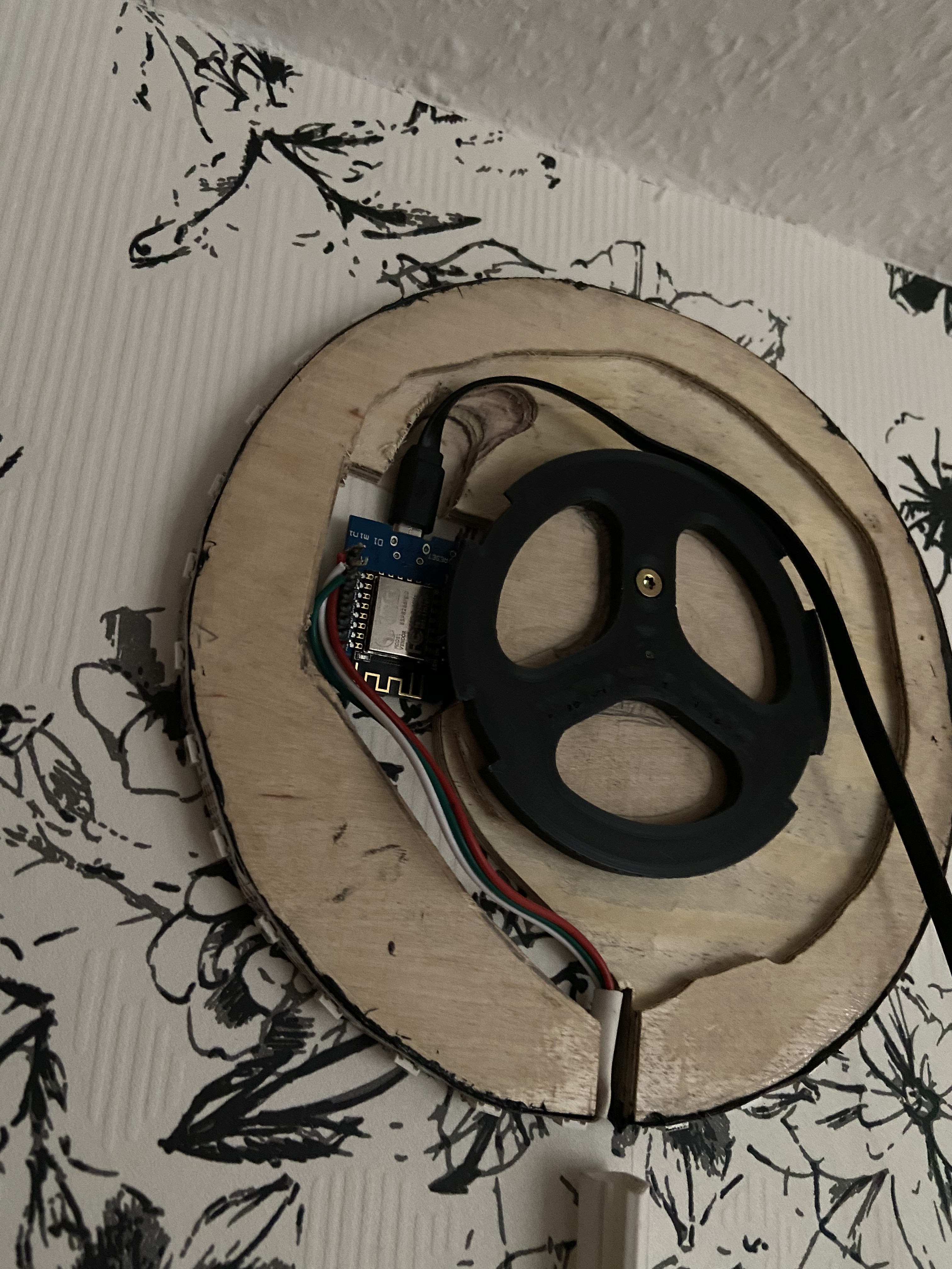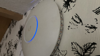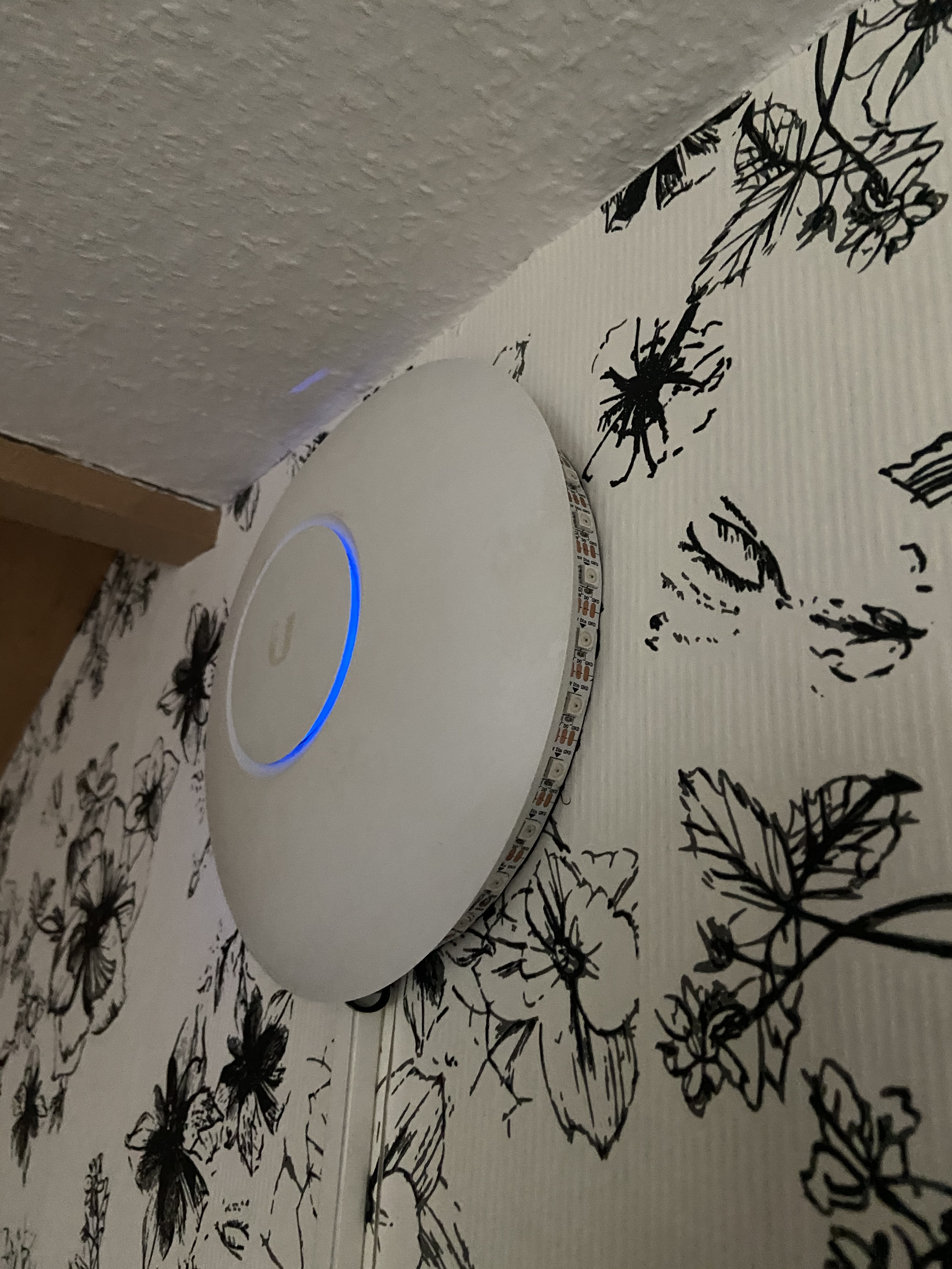 Ich habe mir dann eine Holzscheibe gebaut die hinter dem UNIFI gekommen ist, dort verbaut sind die LED im Kreis und in der Mitte der Wemos.