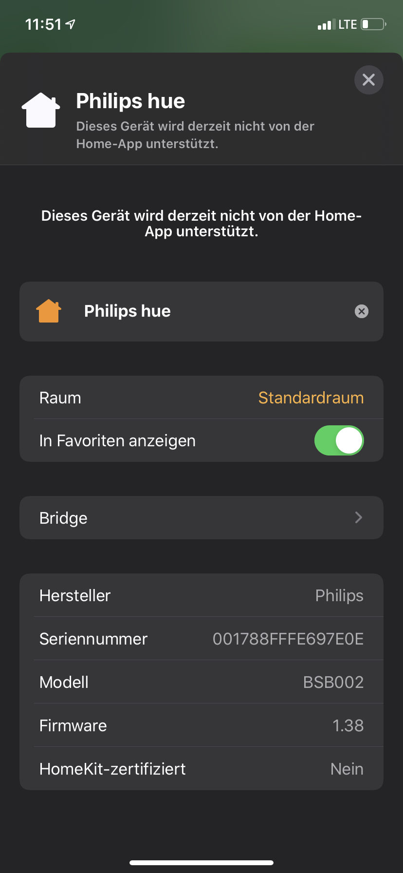 Das in Home steht. Das Philips hue derzeit nicht unterstützt wird 🤔
