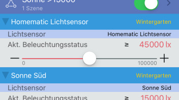 Binde ich jetzt allerdings die Sensoren in Automationen ein also zB als Ereignis „>45000Lx“, dann wird die zugeordnete Szene nicht ausgelöst wenn der eingestellte Helligkeit überschritten wird.