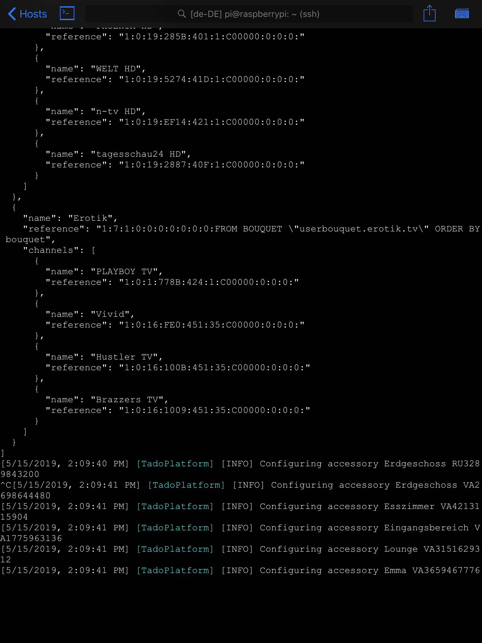 Der erste Start mit dieser Config. Im Terminal erscheint dann ein json string den du in die Klammern bei bouquet kopieren musst