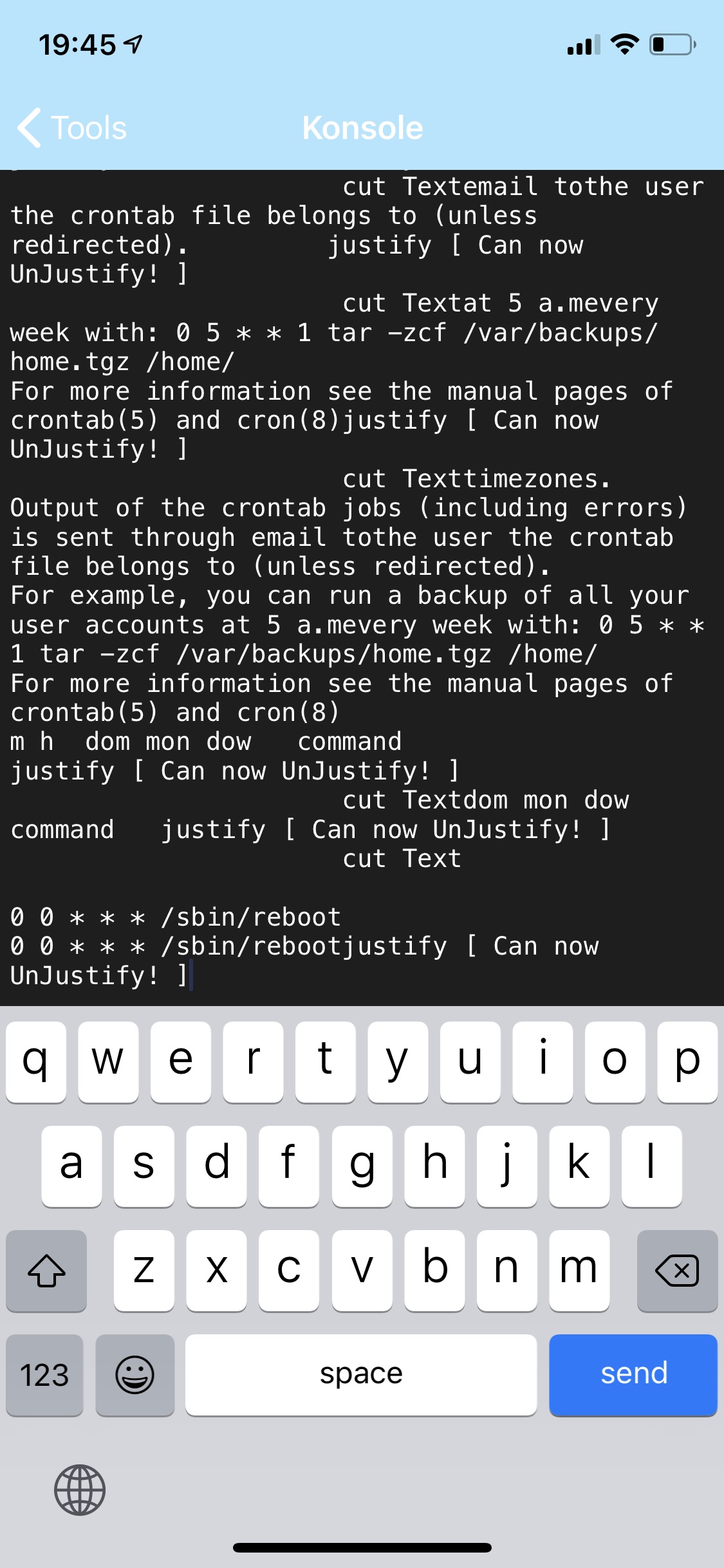 Alles anzeigenDas mit den Bildern ist nicht wirklich schön anzuschauen. Aber im Normalfall reicht es im sudo crontab -e
