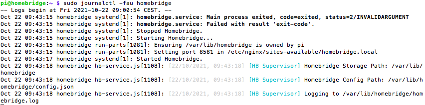 homebridge.service: Failed with result 'exit-code'.
