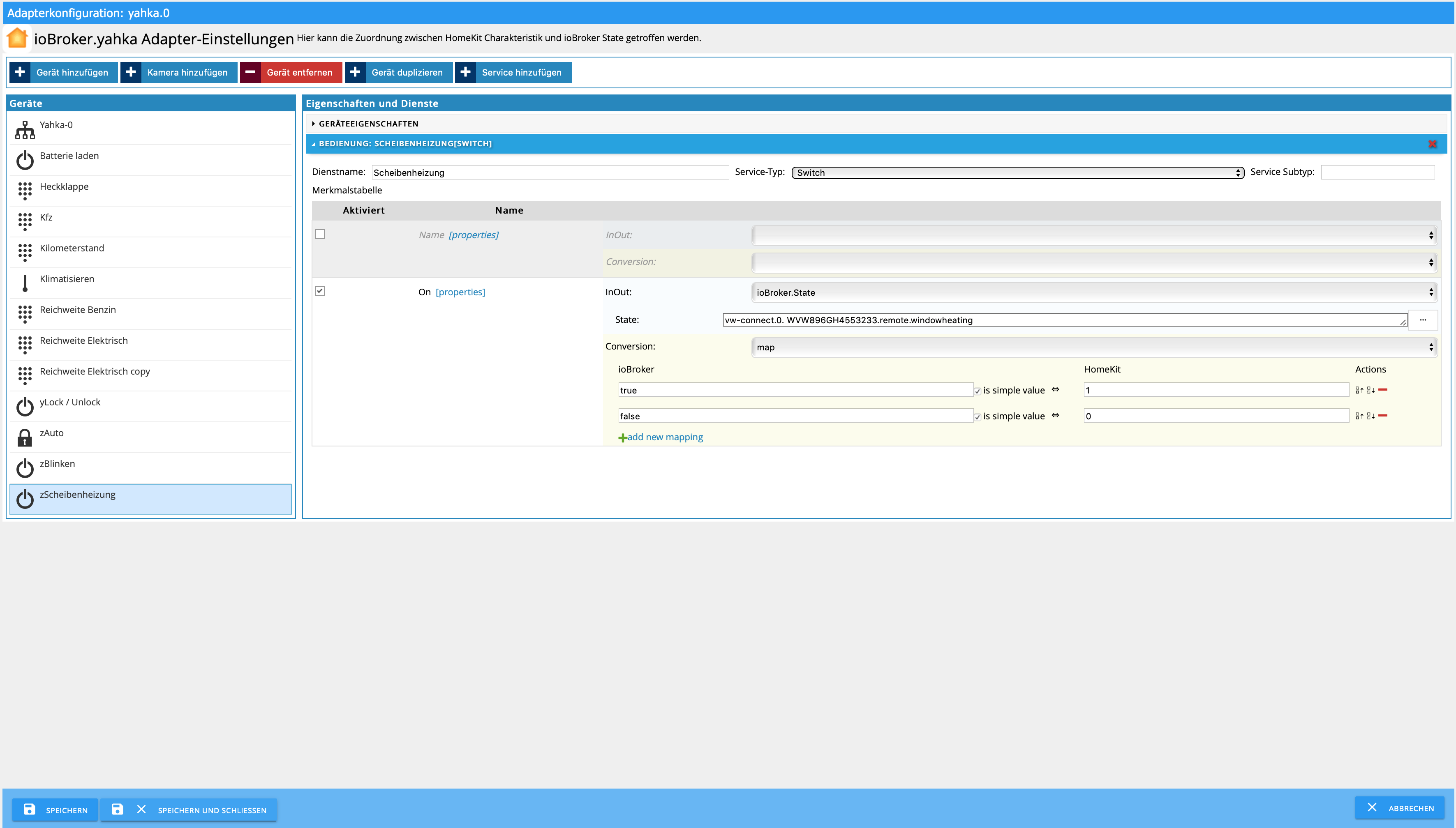 Diese Instanz wird die Sensoren bzw. Schalter an Homekit übergeben. Wie man Yahka installiert und an Homekit weitergibt, steht auch im Netz beschrieben.