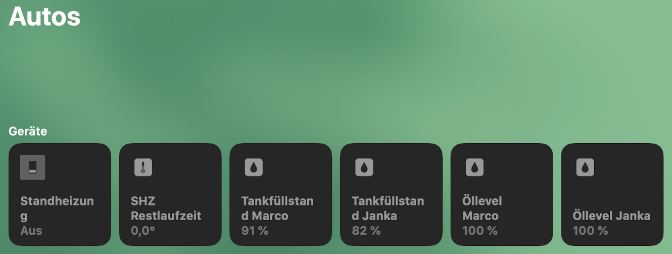 Hallo, hier mal eine kleine Anleitung, wie man sein VAG-Fahrzeug (VW, Skoda, Audi) in Homekit bekommt und endlich die Standheizung auch per Siri oder Regel steuern kann. Z.B.: eine guten Morgen-Szene: Kaffeemaschine an, 10 min später Standheizung an.