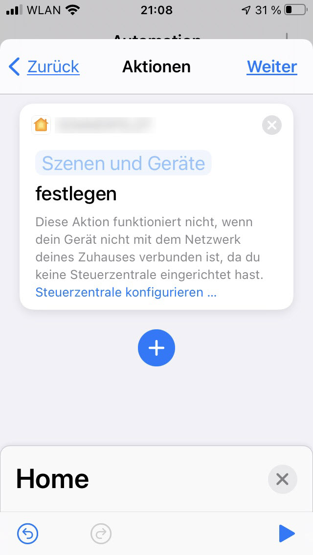 folgendes Szenario: Ich habe in mein HomeKit-Zuhause (auf Apple TV) per HomeBridge meinen Harmony-Hub eingebunden, läuft alles super. In meiner Home-App sehe ich die Geräte und kann alles schalten. das iPhone meiner Frau (eigene AppleID) ist per Familienfreigabe eingebunden, sie sieht also "mein" Zuhause und kann auch alle Harmony-Geräte in Ihrer Home-App schalten. Soweit so gut. Nun wollte ich die geniale Idee aus dem Smartapfel-Beitrag "Plattensammlung per NFC auf AirPlay2 abspielen" umsetzen. Entsprechende Automation in der Kurzbefehle-App erstellt auf meinem iPhone, klappt alles prima. Nun dieselbe Automation auf dem iPhone meiner Frau anlegen wollen, dort bekomme ich aber beim Zugriff auf die Geräte in "meinem" Zuhause eine Fehlermeldung (siehe Anhang) dass das nicht funktioniert, wenn dieses Gerät keine eigene Steuerzentrale hat (was sich auch nicht machen lässt, da diese AppleID nur dieses eine iPhone hat, kein ATV oder iPad verfügbar ist).