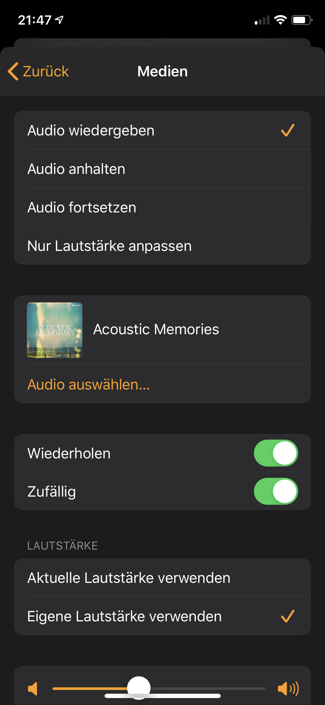 3. "wenn alsamixer Pegel <40, dann Lampe via Homebridge oder HomeKit URL ausschalten"