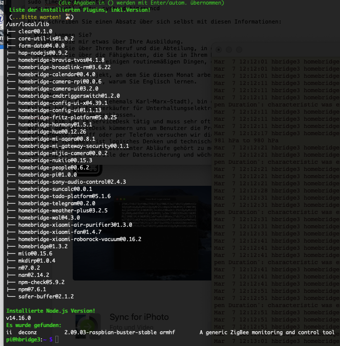 - Tools, homebridge, und plugin*s installiert