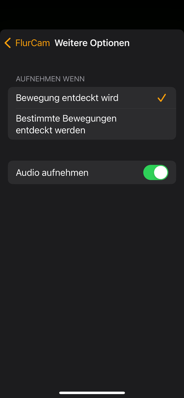 Den Trigger habe so eingestellt, dass bei Bewegung immer aufgenommen werden soll. Das schließt schonmal aus, dass der falsche Trigger gewählt ist.