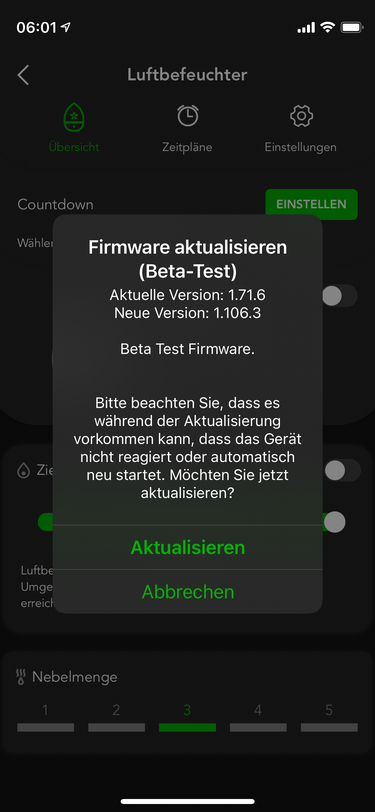 Ich habe im Wohnzimmer zwei Eve Thermostate (Namen Thermostat1G und Thermostat2C) und ein Eve Fensterkontakt für die Terrassentür. Die Software ist überall auf dem aktuellen Stand, bei den Eve Geräten und bei HomeKit und der Eve App. Bei beiden Thermostaten ist die Fenstererkennung aktiviert (schaltet bei offener Terrassentür das Thermostat aus).