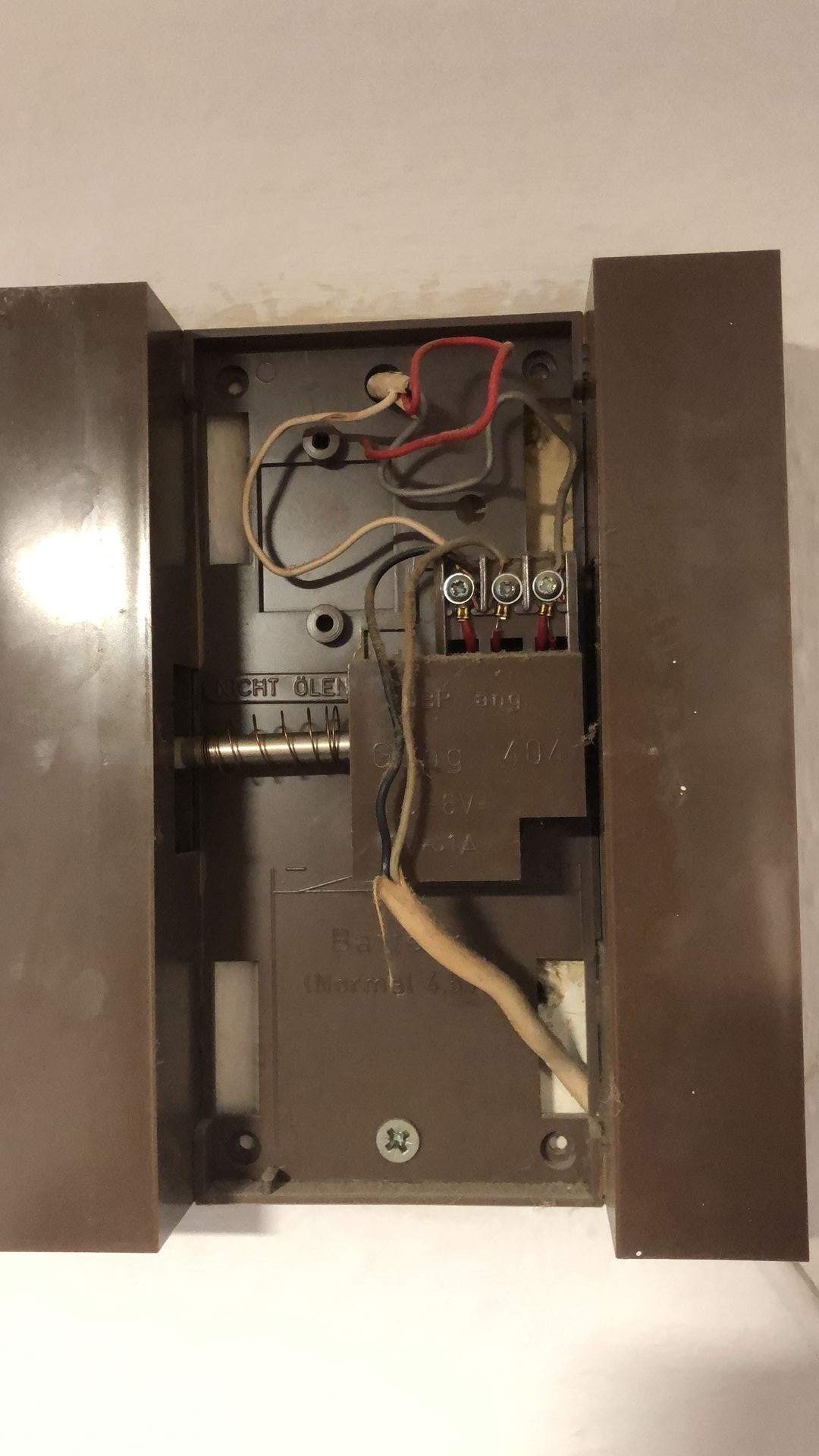 Ich denke mal oben kommt Spannung an und unten das Kabel von der Klingel?