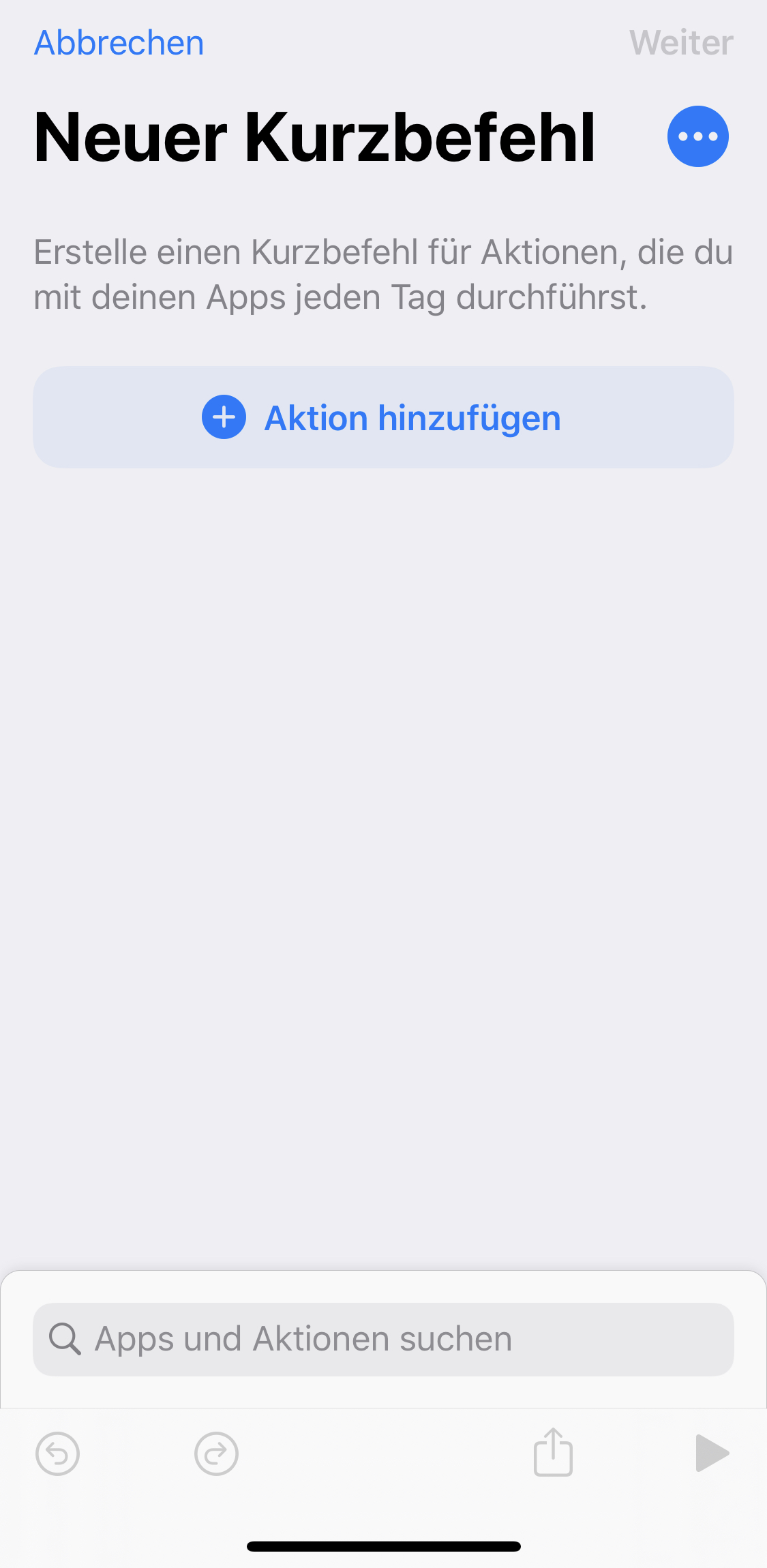 Schritt 1: Neuen Kurzbefehl erstellen und auf "Aktion hinzufügen" drücken.