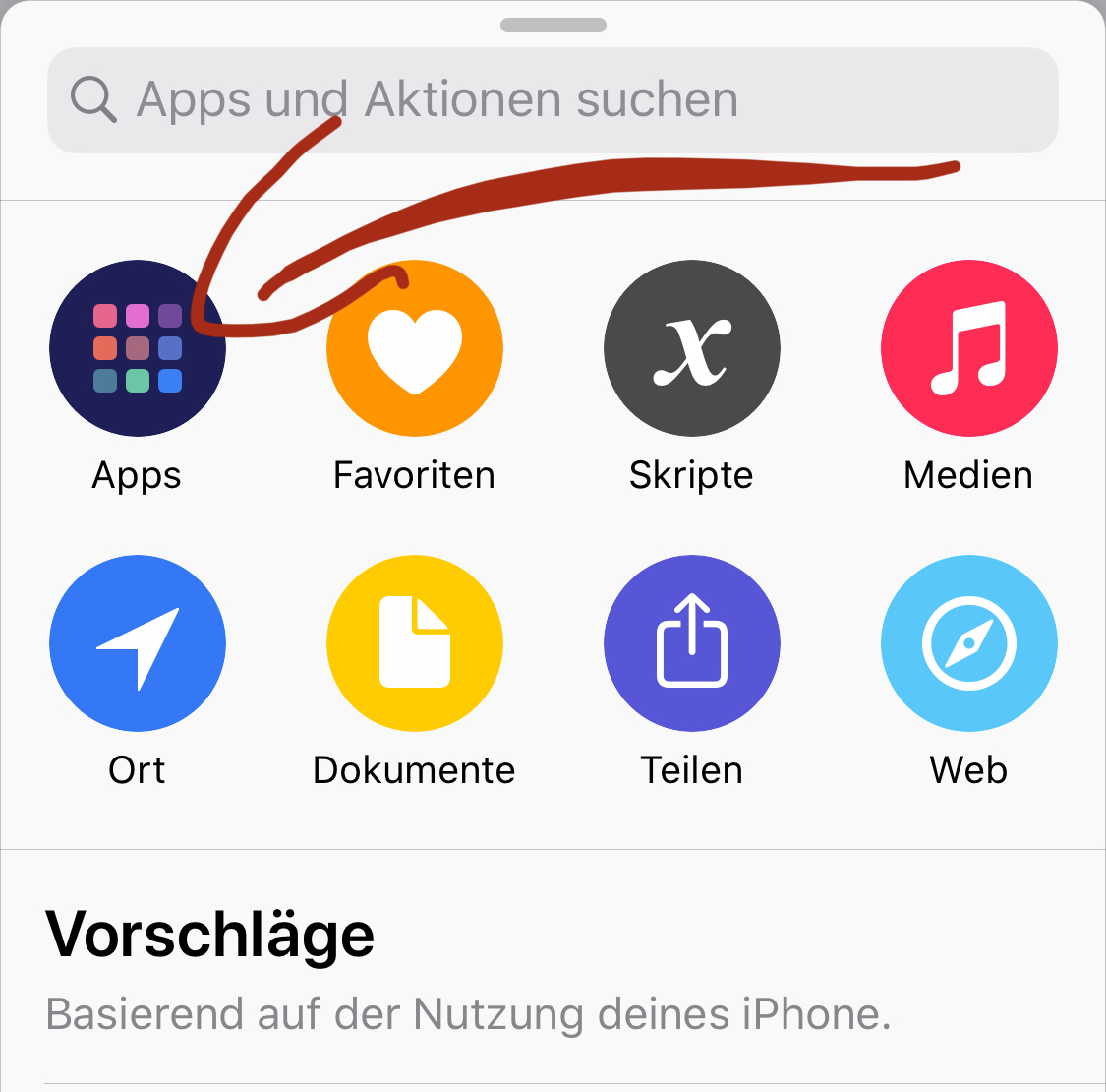 2. Schritt: Tippe auf "Apps" unter den vielen angezeigten Kacheln: