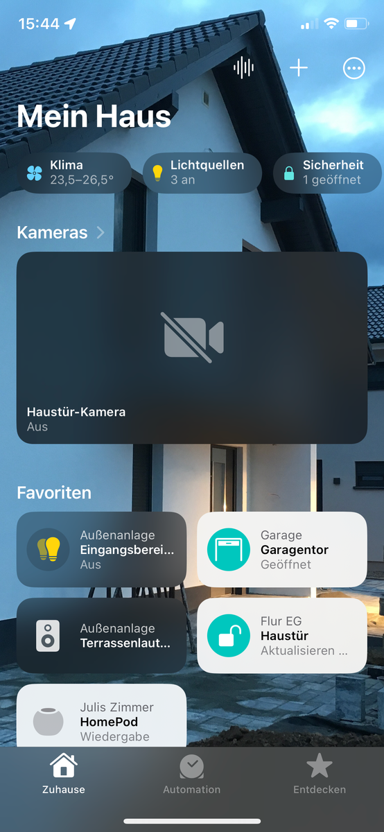 - Darstellung des Videos über HomeKit. Idealerweise als Livebild oder alternativ als Screenshot, der alle paar Sekunden erneuert wird. Es wäre natürlich super, wenn der Ton übertragen wird.