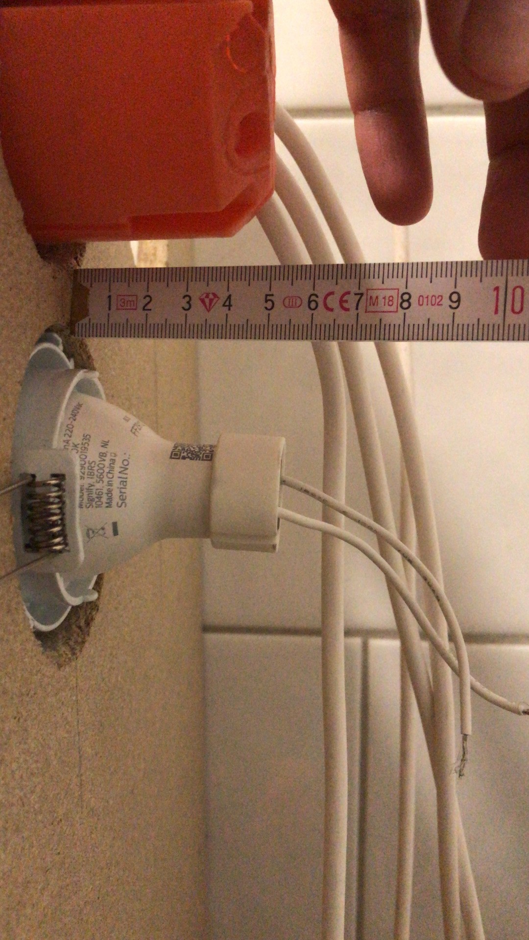 Hier ein Bild eines eingebauten Philips GU10 Spots. Mit 8cm kommt man entspannt aus.