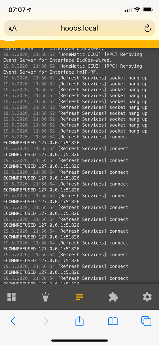 Bei Homebridge Geräten steht am Anfang "aktualisieren" und dann "keine Antwort"