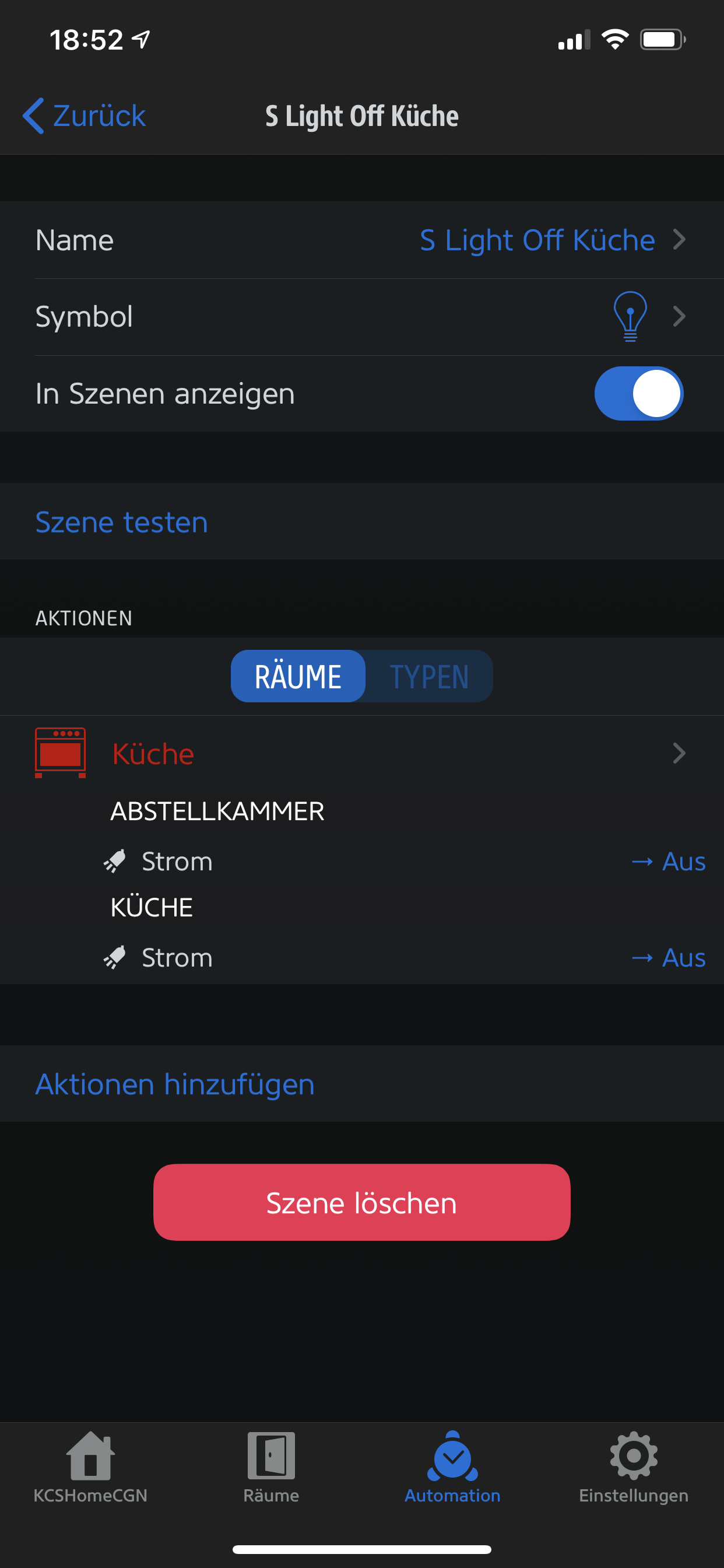 Nachtlicht aus: Szene S Light Off Küche + Regel R Light Off Küche
