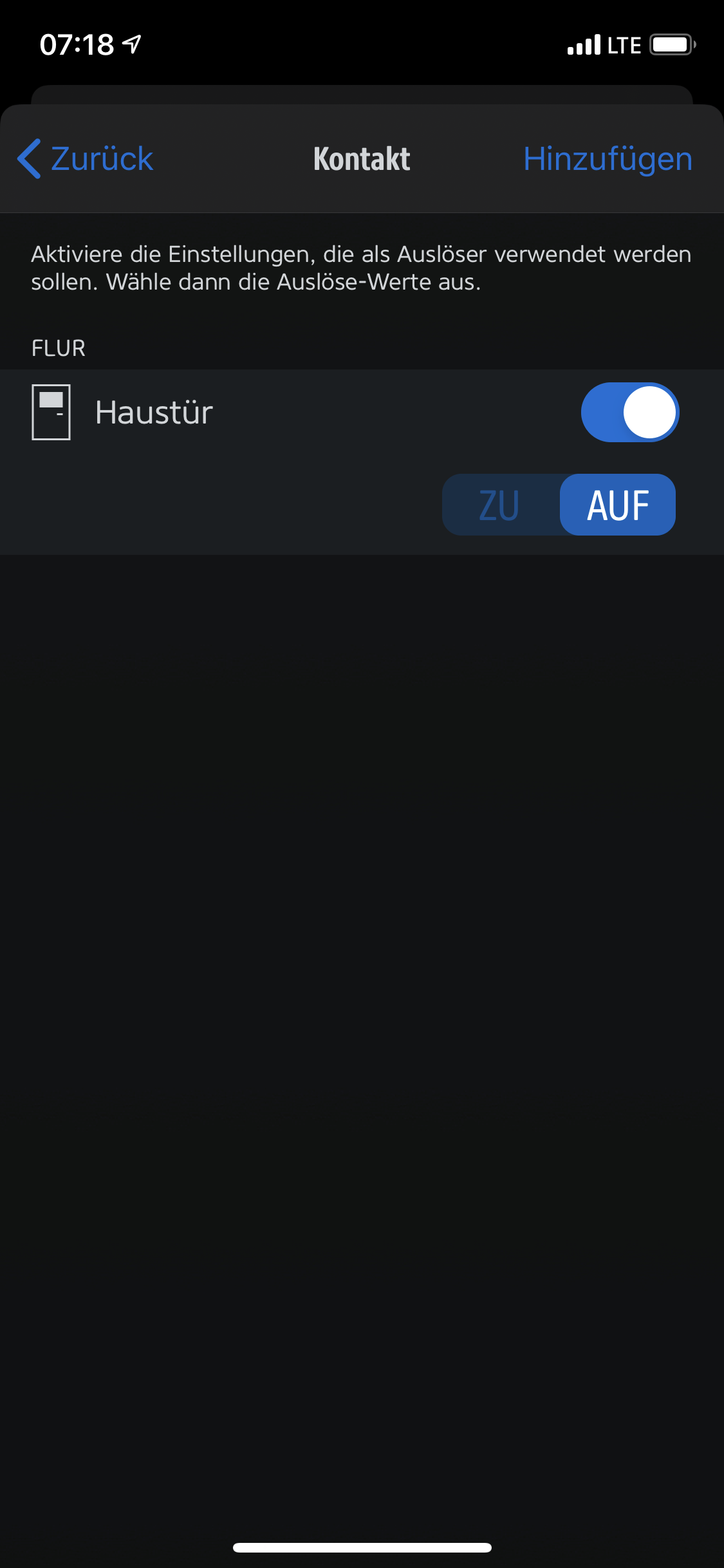 Dann Auslöser: Rubrik Kontakt und fügst zb den Türkontakt & weitere hinzu mit Angabe AUF. Dann kommt nochmals eine Übersicht, hier auf weiter.