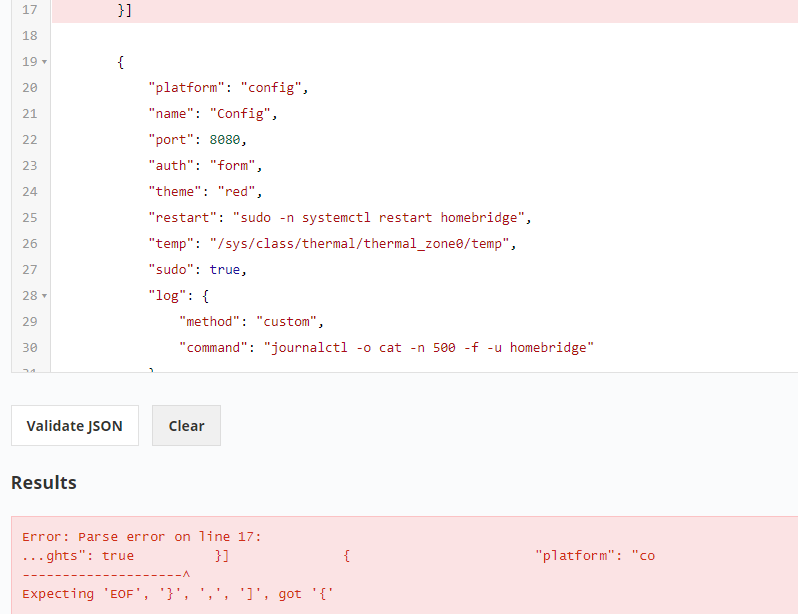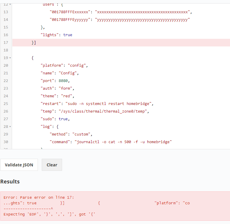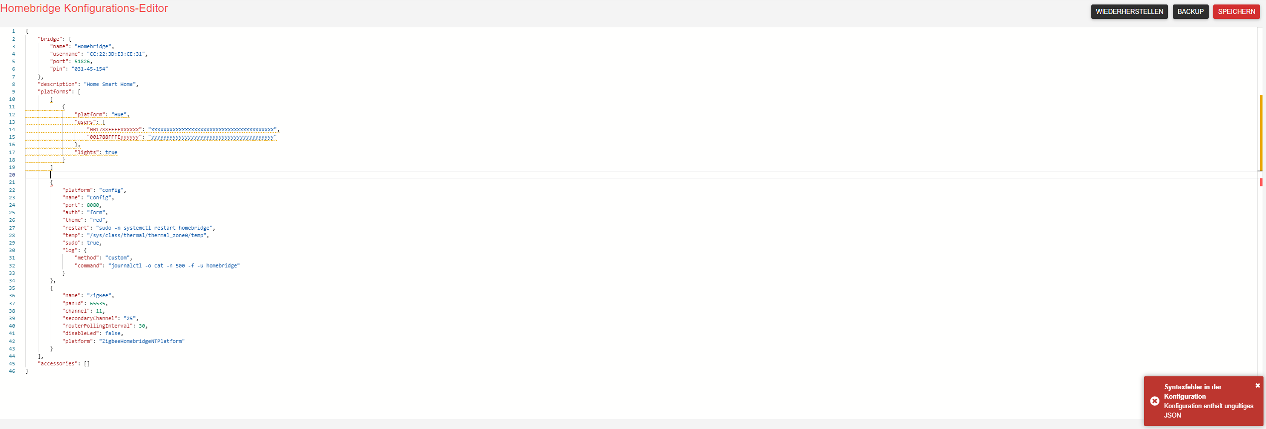 Valid JSON angezeigt. Allerdings kommt in Homebridge dann der Fehler :