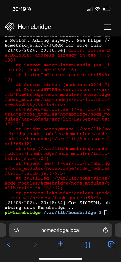 Das kommt nach dem Neustart der Homebridge....
