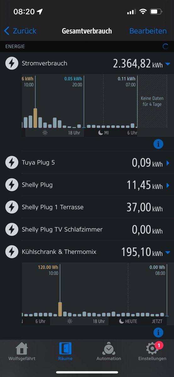 Alles andere funktioniert wunderbar, die Aktualisierung vom Gesamtverbrauch und der einzelnen anderen Messwerte werd richtig Angezeigt und aktualisiert.