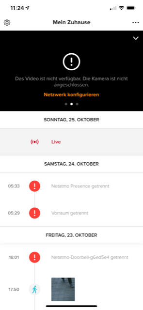 In den Netatmo Security App sind alle 3 Produkte offline und scheinen als getrennt an.