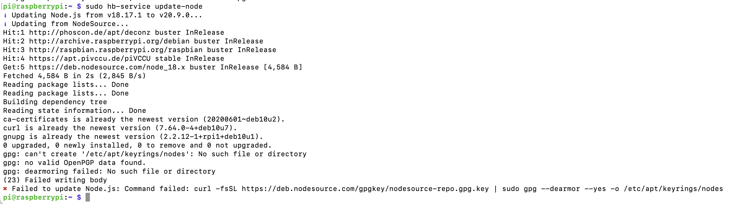 Danach dann das Full-Upgrade und Homebdrige läuft nun auf OS bullseye und mit der aktuellen Node-Version.