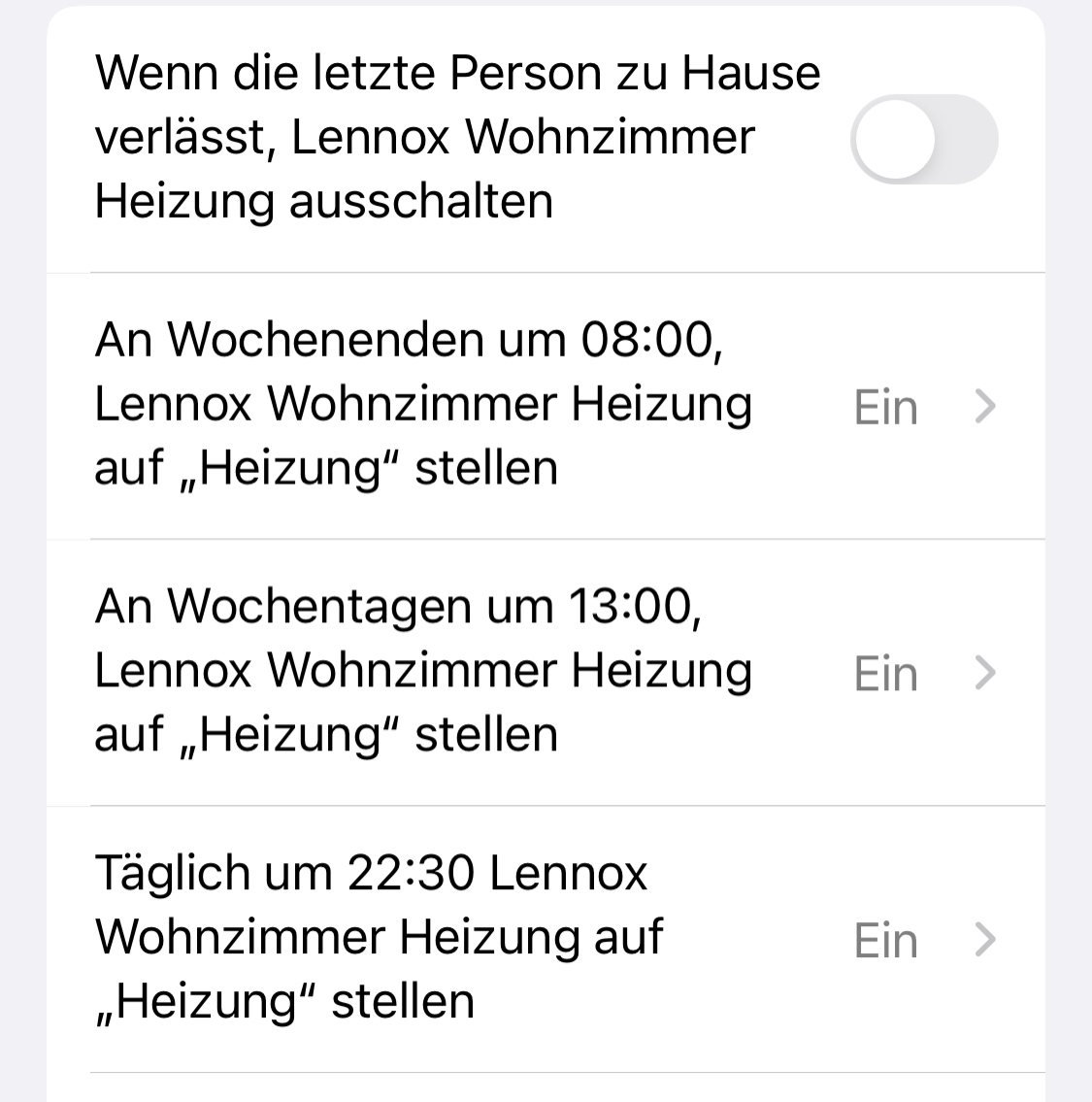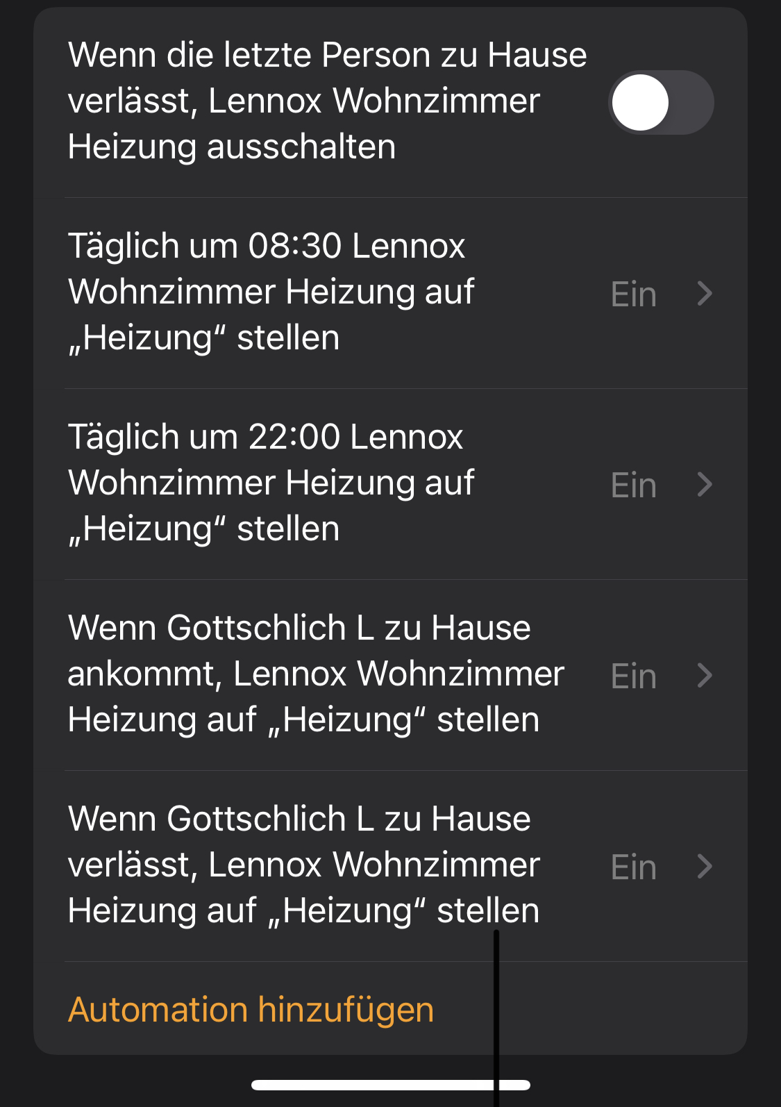 Zusätzlich habe ich zwei Automationen: