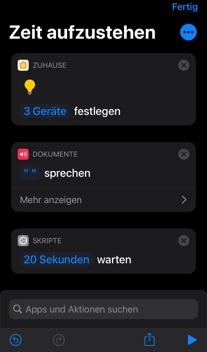 Eine eigenständige Funktion dafür gibt es aber dann wohl bei HomeKit nicht, man kann ja eine Automation einrichten, wenn ein Bewegungssensor das "Erkennen von Bewegung beendet", doch kann man da leider keine Zeitspanne einstellen (wie etwa nach 5 Minuten von Beenden von Erkennen von Bewegung)? Wäre da schon etwas überrascht, bei Amazon Echos geht das etwa auf jeden Fall ohne eine Kopplung an Lampen.