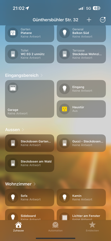 Zusatzfrage: Könnte der Fusschalter alternativ auch eine Gruppe von Lichtern AUSschalten (er dient ja zum Verlassen des Gartens)? Also eine Automation der Art „Wenn EVENT dann schalte folgende Geräte AUS (sofern sie an sind)“ (Ich glaube, auch so etwas ist in der Home-App nicht vorgesehen, oder?)