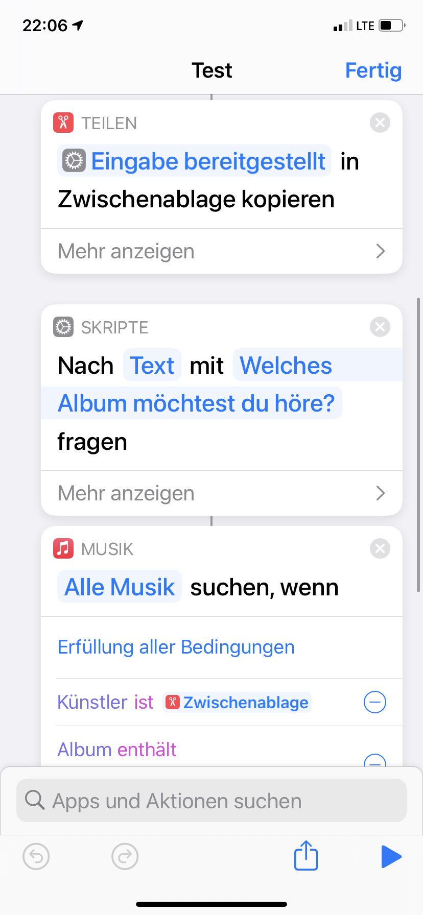 Siri fragt „was möchtest du für StringAnswer“ Benni1309 28. November 2020 Zitat von Feba mein "Sorgenkind": möchtest du Musik hören? An dem Problem sitze ich auch gerade...bisher bin ich soweit das ich heruntergeladene music abspielen, vielleicht hilft das ja schon mal.