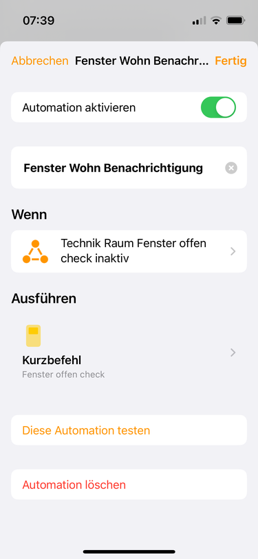ich wollte eine bestehende Automation, welche einen Kurzbefehl beinhaltet, überarbeiten. Es soll der Status der Stromversorgung abgefragt werden und mit einem „Wenn ist gleich“ darauf reagiert werden.