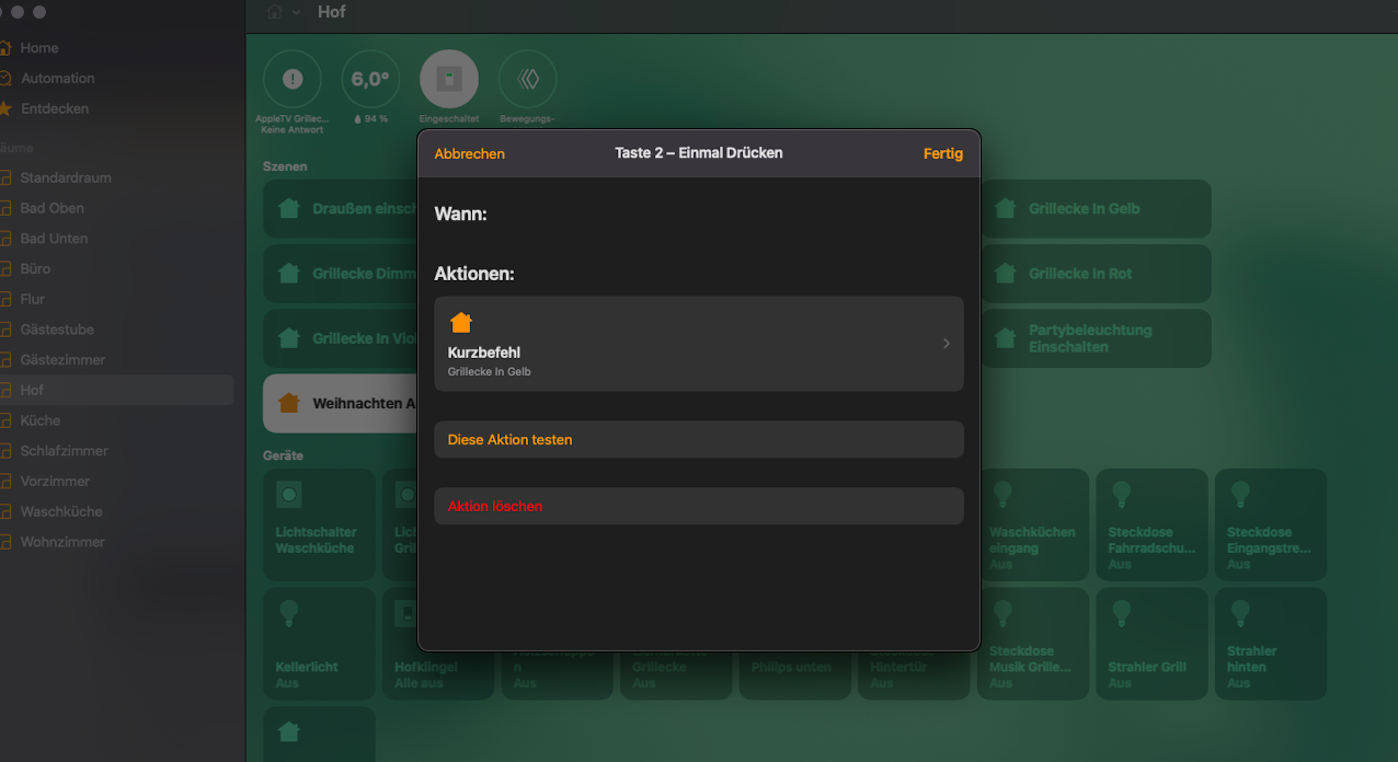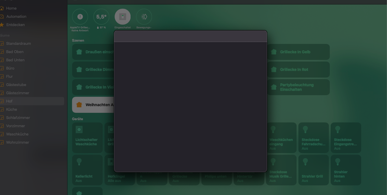 Jetzt wollte ich das verändern und z.B. andere Helligkeitsstufen einstellen. Wenn ich in HOME nun auf den Lichtschalter gehe und die Taste konfigurieren will, steht da "Kurzbefehl" und Szenenname. Drück ich dann darauf öffnet sich ein Fenster komplett grau, welches leer ist und nicht mal was zum schließen anzeigt. Mir bleibt dann nur HOME mittels "Sofort beenden" zu schließen.