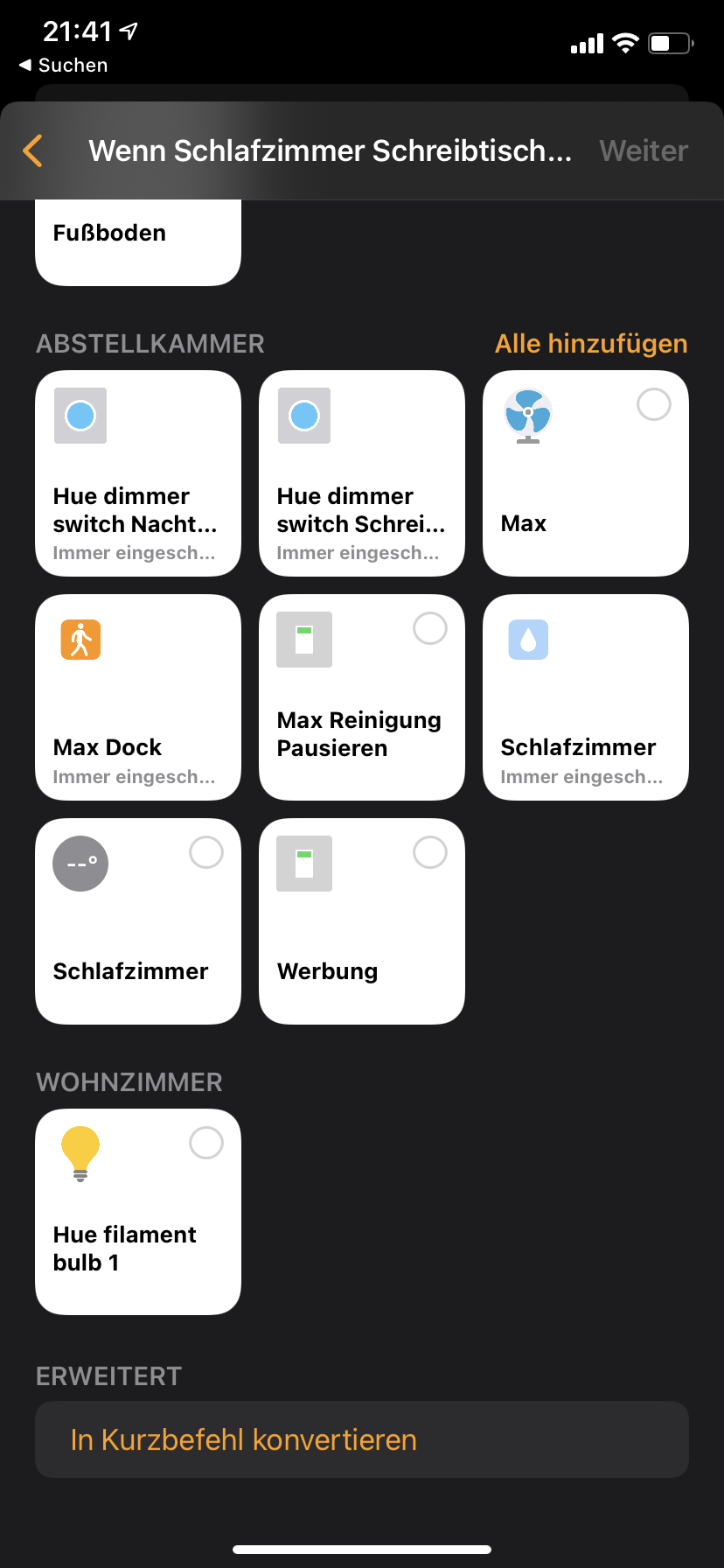 Hat das Funktioniert kannst du nun auf "Fertig" tippen und das selbe nun nochmal machen. Nur wählst du diesmal als Trigger für die Automation das schließen des Fensters aus und Trägst im letzten Schritt unter "Haupttext anfordern" hinter "target-state" "auto" ein.