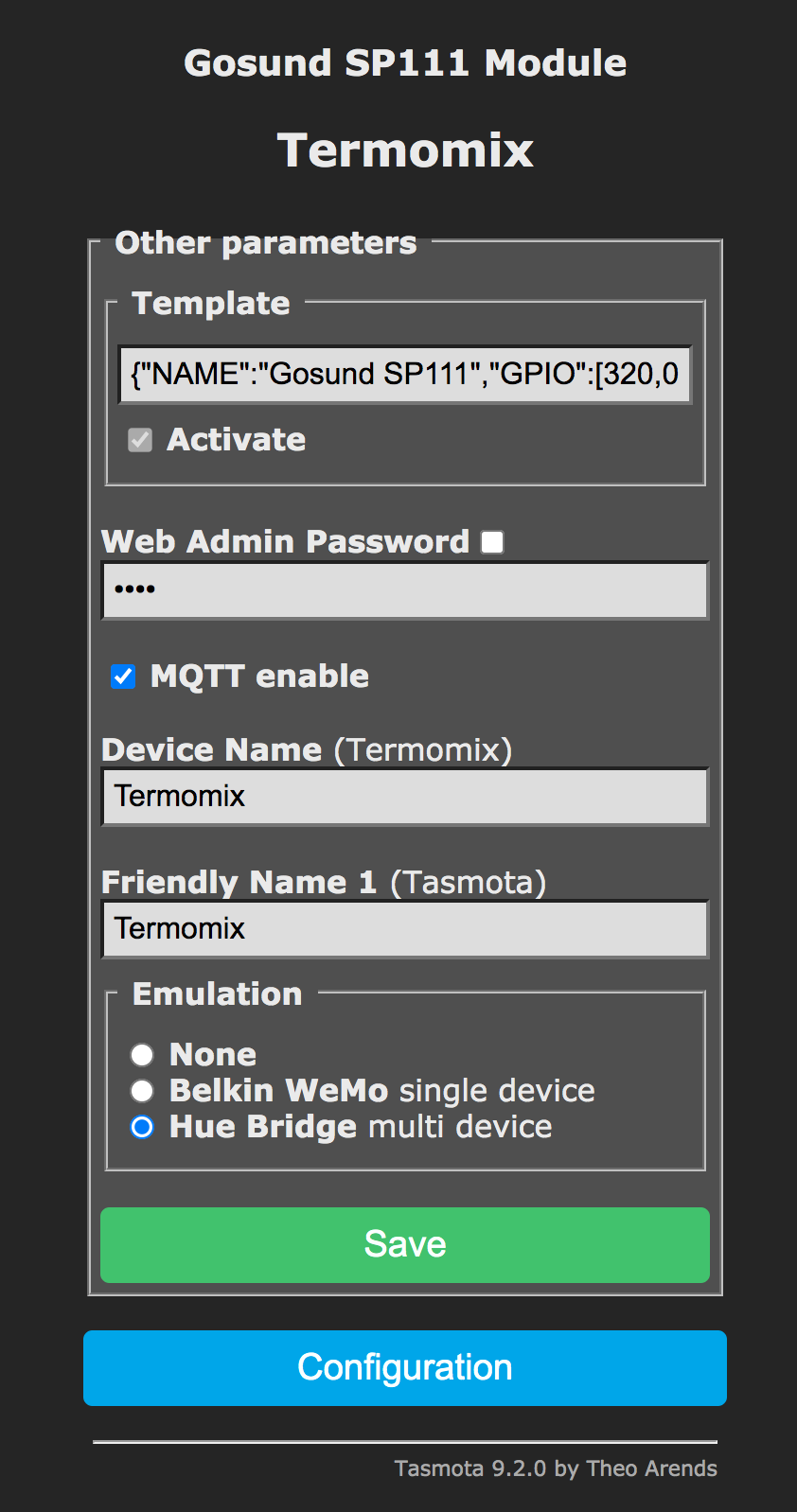 20:15:35 RSL: homeassistant/sensor/03ED0F_status/config = {"name":"Termomix status","stat_t":"tele/tasmota/HASS_STATE","avty_t":"tele/tasmota/LWT","pl_avail":"Online","pl_not_avail":"Offline","json_attr_t":"tele/tasmota/HASS_STATE","unit_of_meas":"%","val_tpl":"{{value_json['RSSI']}}","ic":"mdi:information-outline","uniq_id":"03ED0F_status","dev":{"ids":["03ED0F"],"name":"Termomix","mdl":"Gosund SP111","sw":"9.2.0(tasmota)","mf":"Tasmota"}}