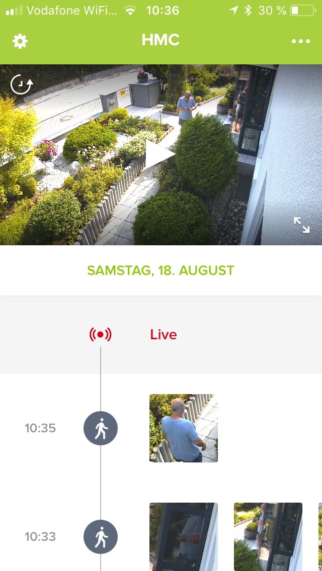 Wenn ich das Bild anklicke wechselt es nach Life und bringt das Kamerabild.