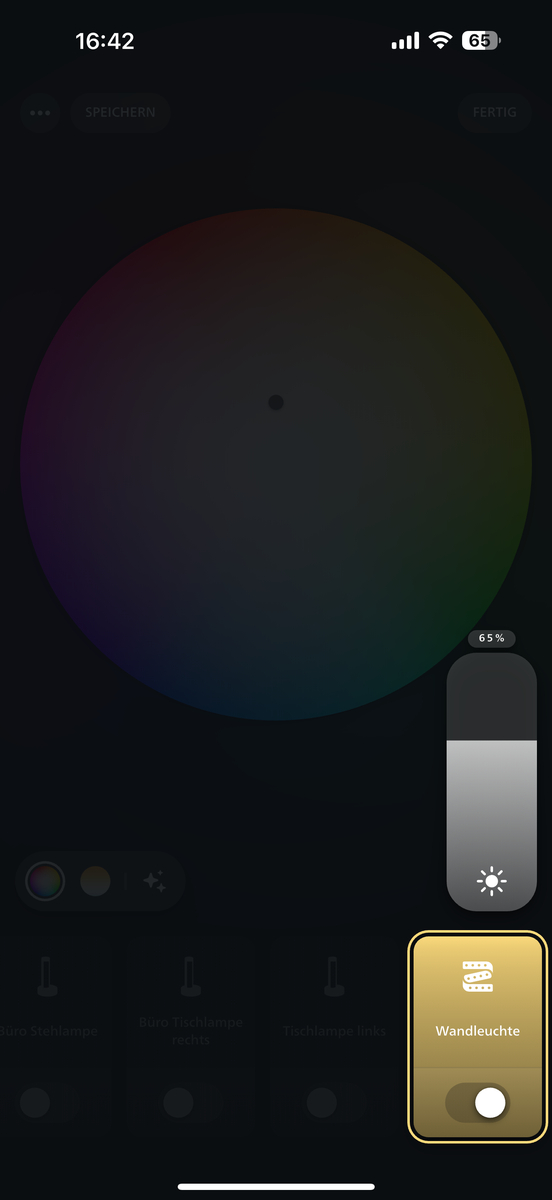 Zwischenzeitlich habe ich auch eine andere HUE Birne ins Büro bewegt...dimmt sofort. Die Leisten nicht.