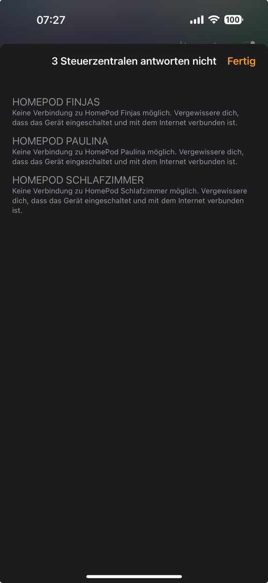 ich habe immer mal wieder das Problem, dass mehrere Steuerzentralen in meinem Apple Home nicht antworten.