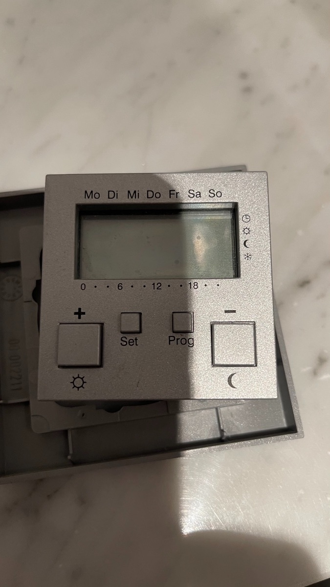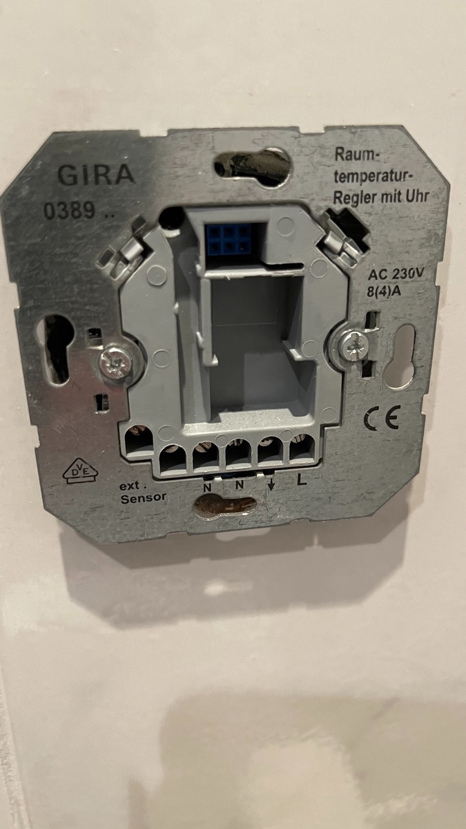 Danke für den Tipp. Aber der Gira Thermostat ist hinüber und klickt nur noch fröhlich vor sich hin. Zudem hängt der ja in der gefliesten Wand in der kein Platz für die Teile ist.