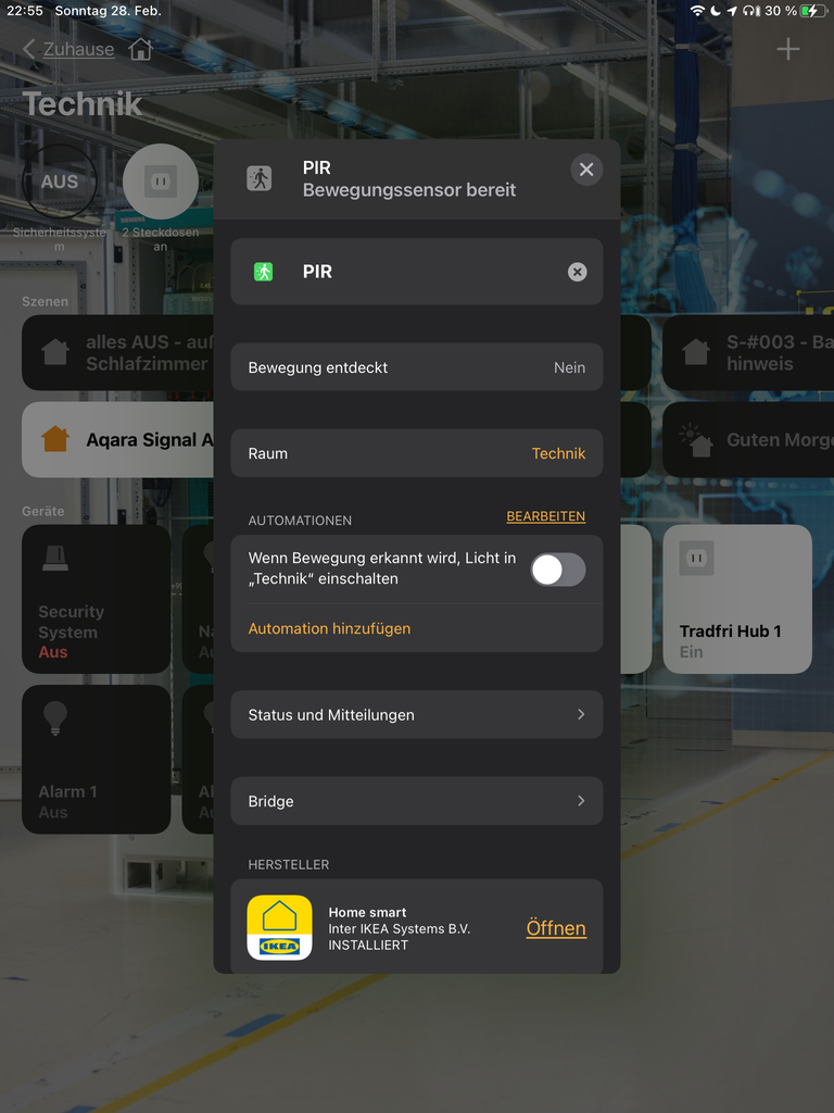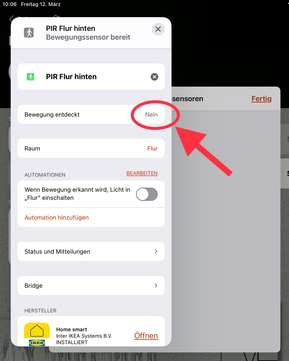 Hast du auch den Bewegungsmelder über das Tradfri Gateway im HomeKit eingebunden?