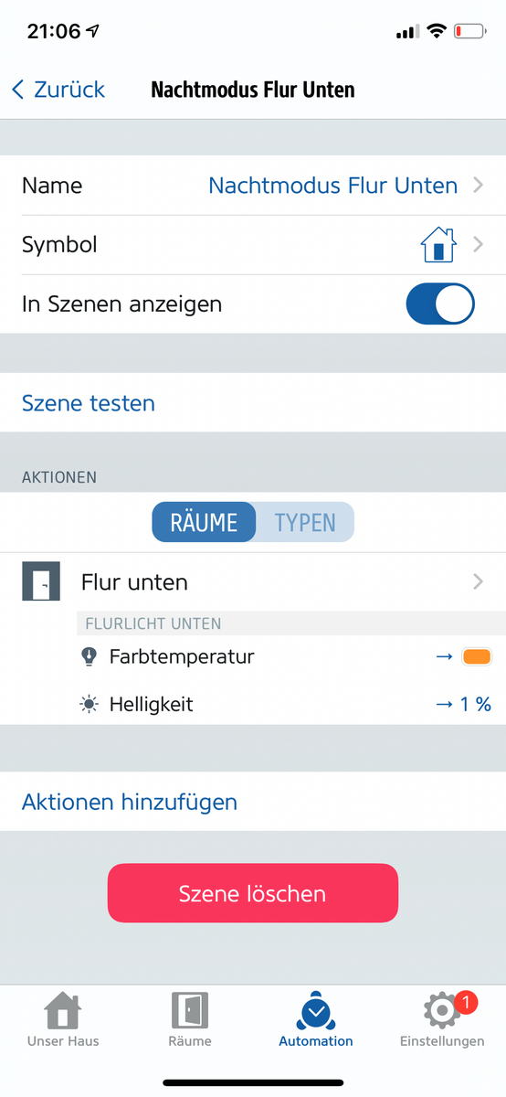 Hallo zusammen. Ich habe in der EVE App 2 Szenen pro Flur erstellt: