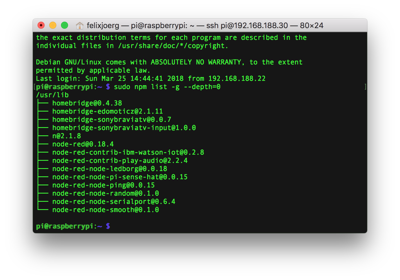 Codesudo service homebridge stop sudo npm set prefix '/usr' -g sudo npm update -g homebridge --unsafe-perm sudo npm update -g homebridge-edomoticz --unsafe-perm cd /usr/lib/node_modules sudo npm rebuild homebridge sudo npm rebuild homebridge-edomoticz18. eure config.json von homebridge nach folgendem schema anpassen: