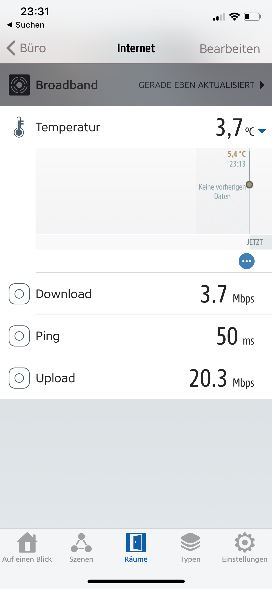 da ich momentan Probleme mit meiner Internetgeschwindigkeit habe dachte ich mir es wäre ein nettes Feature die Internetgeschwindigkeit stüdnlich neu gemessen direkt in HomeKit angezeigt zu bekommen.