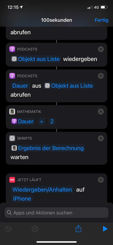 Habe die Dauer durch 2 geteilt und durch Pause und Wiedergabe getrennt weder mit Kurzbefehl ausführen noch App öffnen etc. Habe ich kein Erfolg… echt schade